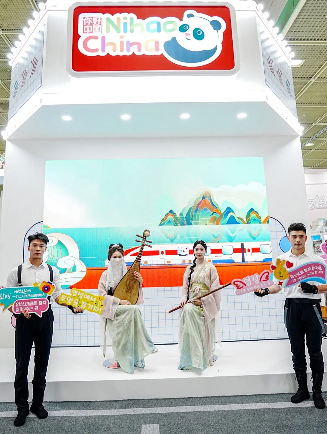 展厅内人头攒动,江苏展区现场气氛热烈,射阳精致的安徒生童话乐园、日月岛、泊心黄沙港等景区文创及特色的非遗农民画、剪纸吸引了众多韩国民众驻足欣赏,以高尔夫、民宿、杂技等旅游产品串成的精品线路引来韩国旅行商的关注交流与民众咨询。在中国区舞台,射阳文广旅局从湿地生态、亲子研学、农旅互融等方面展示推介射阳丰富的文旅资源,给韩国民众留下了关于射阳的美好印象。