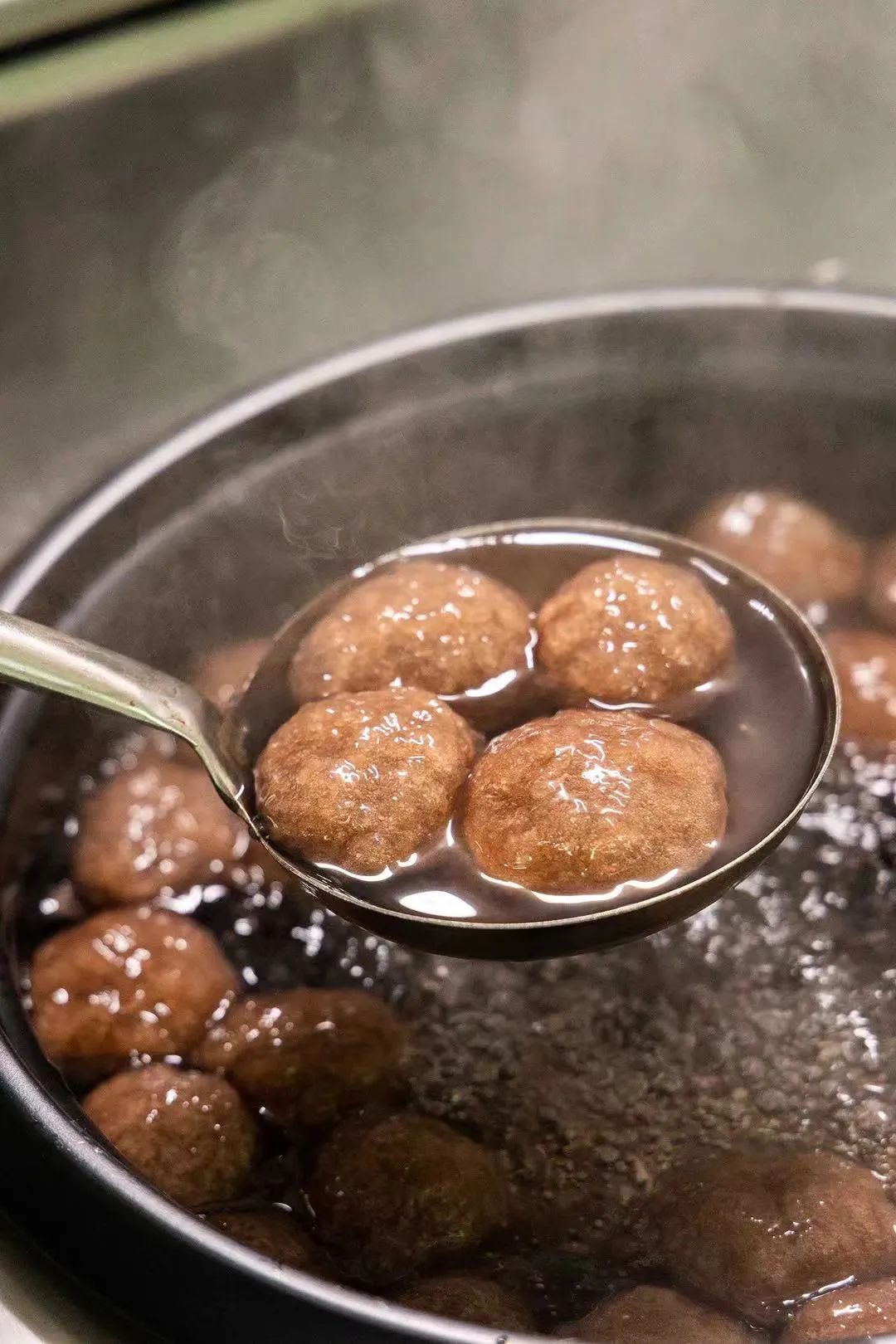 用藕粉做皮,包裹芝麻、糖桂花等馅料