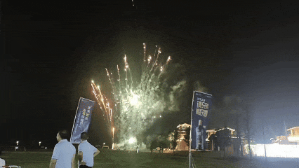 烟花划破夜空,鼓阵雷动