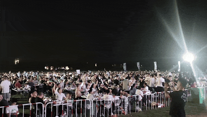 与集市飘香的美食、冰啤酒交织