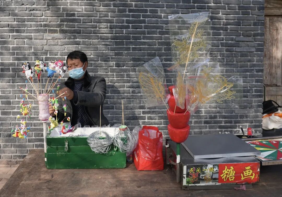 精巧的糖画与泥人,甜丝丝的糙米糖,依旧是记忆中朴素的味道。