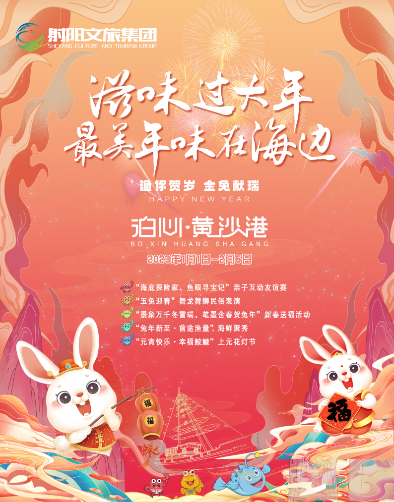 上一篇:滋味盐城过大年 | 欢乐嗨不停!这份“花里大丰 瑞兔迎春”旅游“大餐”已备齐,欢迎来品! 下一篇:滋味盐城过大年|“2023燕舞新春美好生活节”欢乐启动,热闹非凡!