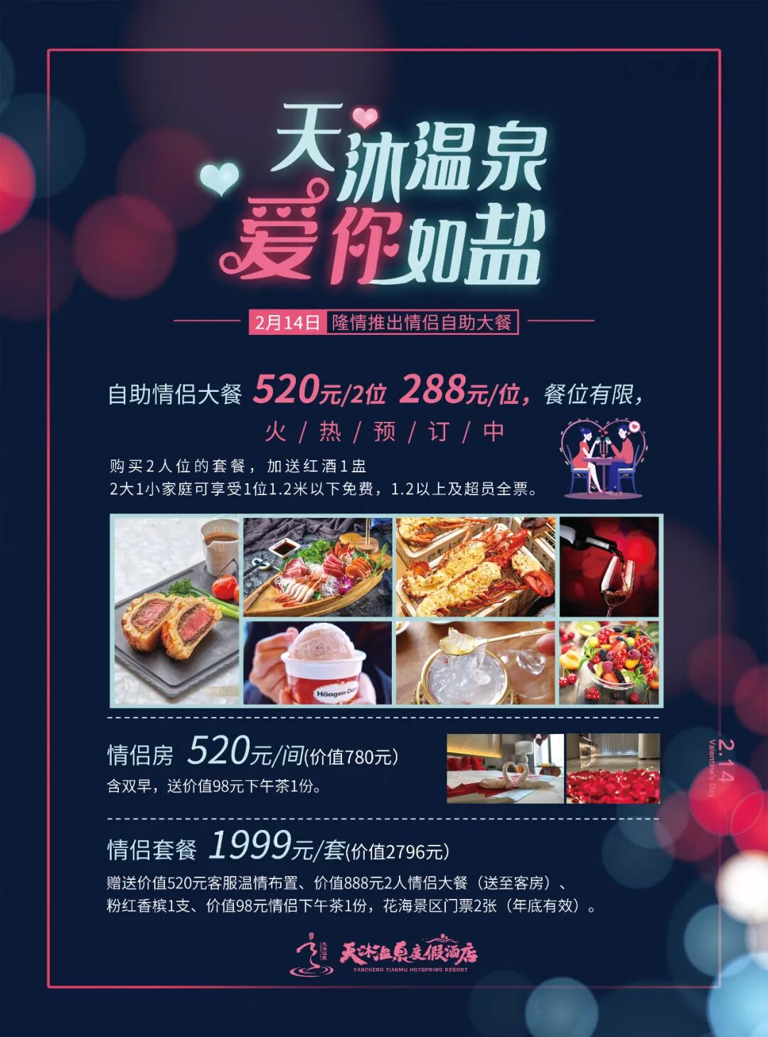玫瑰花1支、精美小礼品1份部分套餐送2月14日《只有爱》观影券2张
