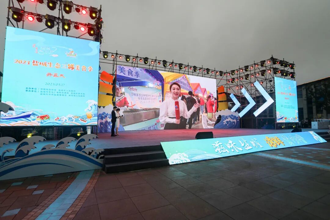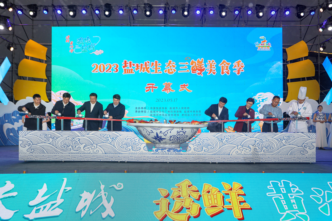华灯初上、晚风微凉。5月17日晚,2023年盐城生态三鲜美食季在黄沙港泊心广场开幕。副市长黄希别克·努尔旦出席,中国饭店协会副会长张景富,县委副书记、县长王宁分别致辞,县人大常委会主任崔晓荣,县政协主席邱德兵,县委副书记孙庆树参加。