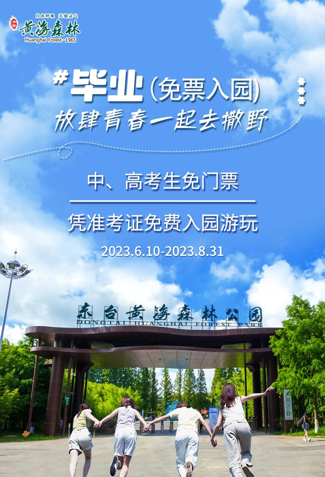 凡参加2023年中、高考的全国考生,凭本人中、高考准考证或录取通知书,2023年6月10日至2023年8月31日到黄海森林公园可享受免门票优惠(活动政策另行通知),景区内指定饮品买一赠一。