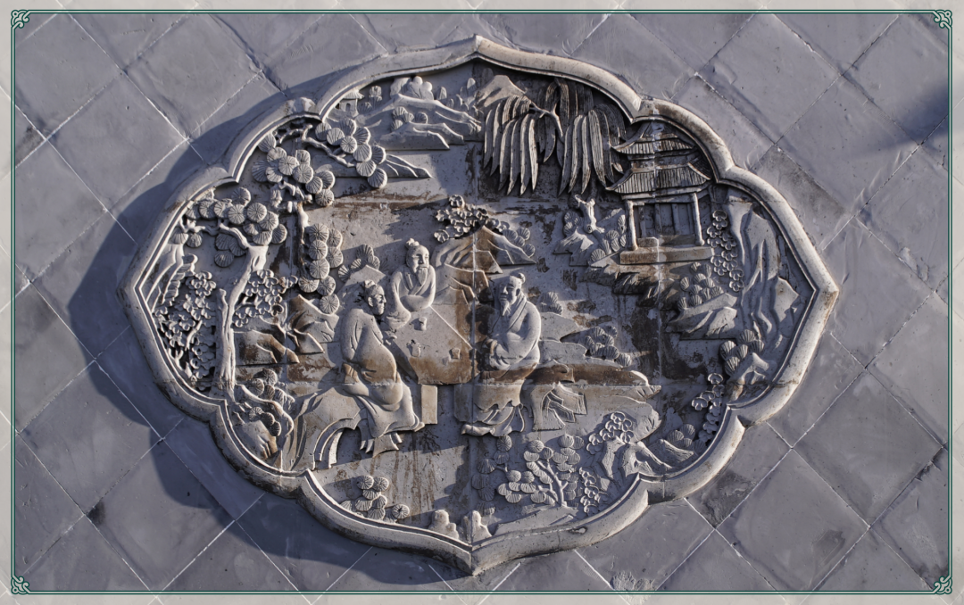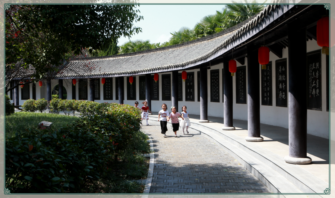 走出施耐庵纪念馆西面一组建筑便是“施耐庵书院”,该院还原了当年施耐庵教学著书的场景。门前挂着一副“一部野史识得此中滋味;千秋文心觅来无上清凉”的对联。走进书院大门,迎面有座砖砌照壁,壁面镶有花岗岩石板,上刻《施耐庵书院序略》。