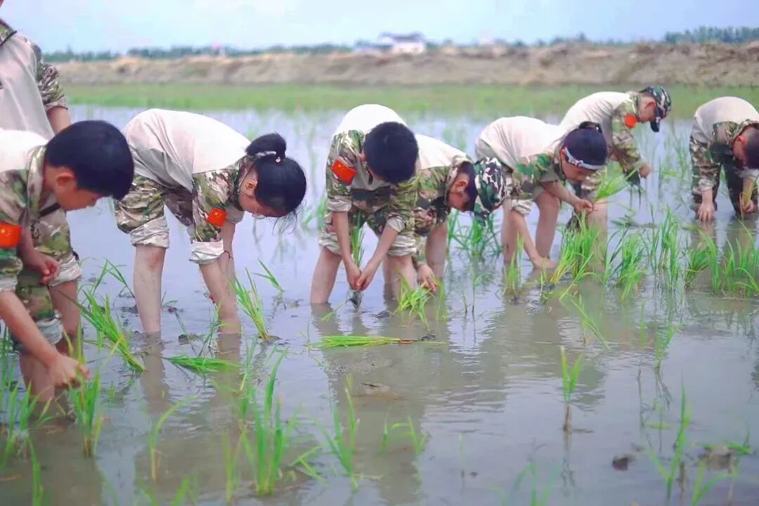 上午:整理内务、晨练、早餐、红蓝九五步枪对抗游戏、体验小农夫粒粒皆辛苦-插秧季;