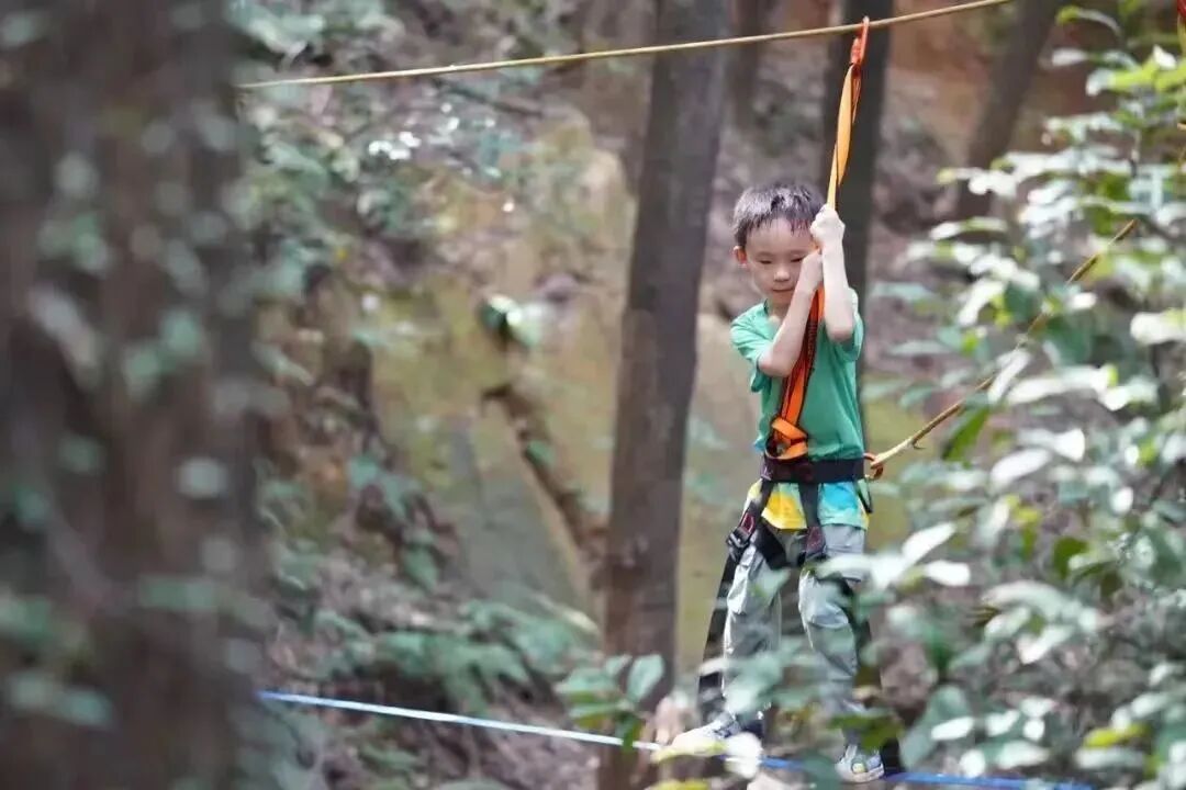 溜索、走扁带,培养孩子们飞跃困难、战胜自己的信念。