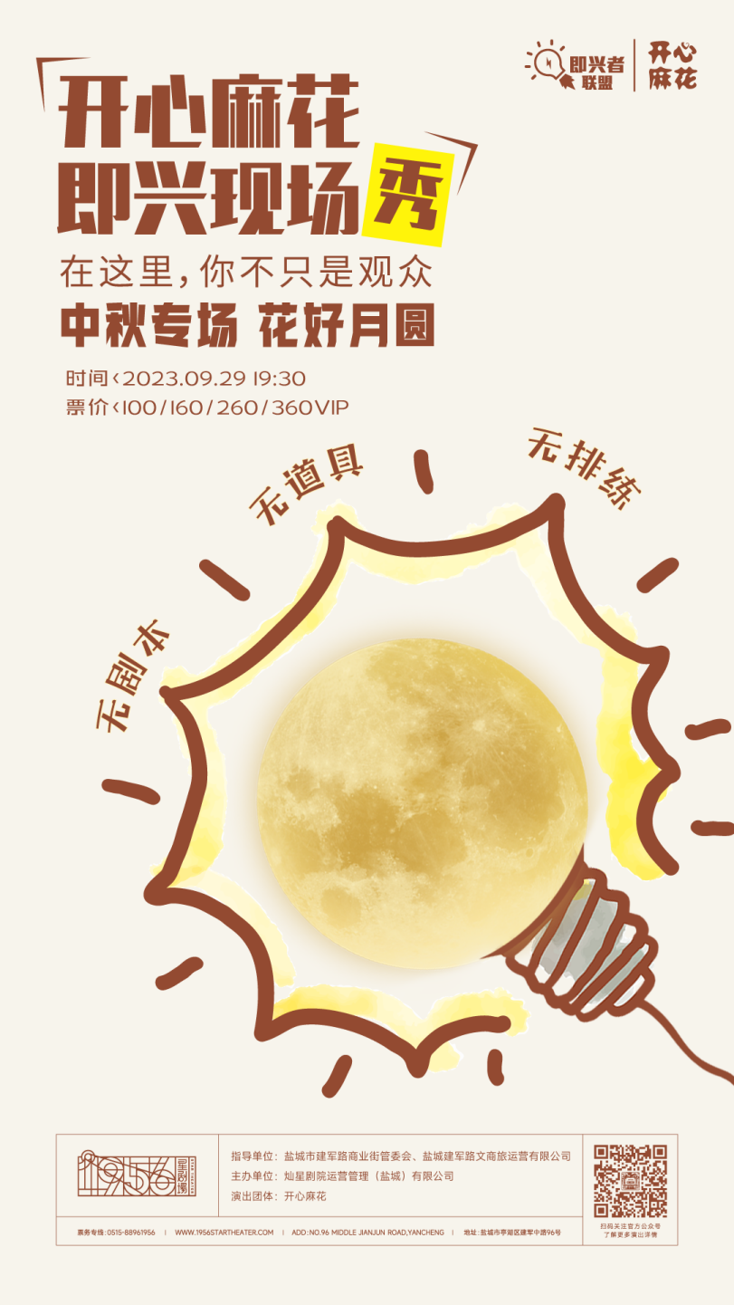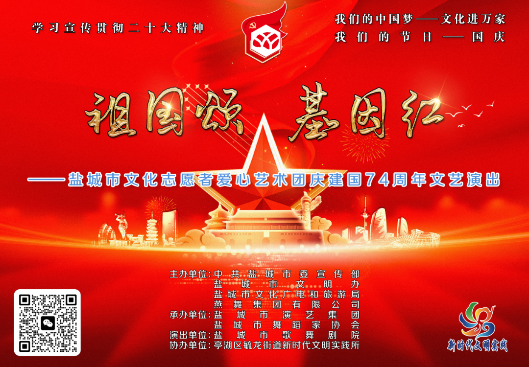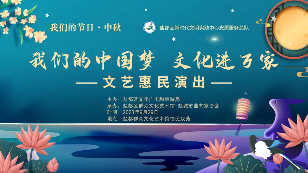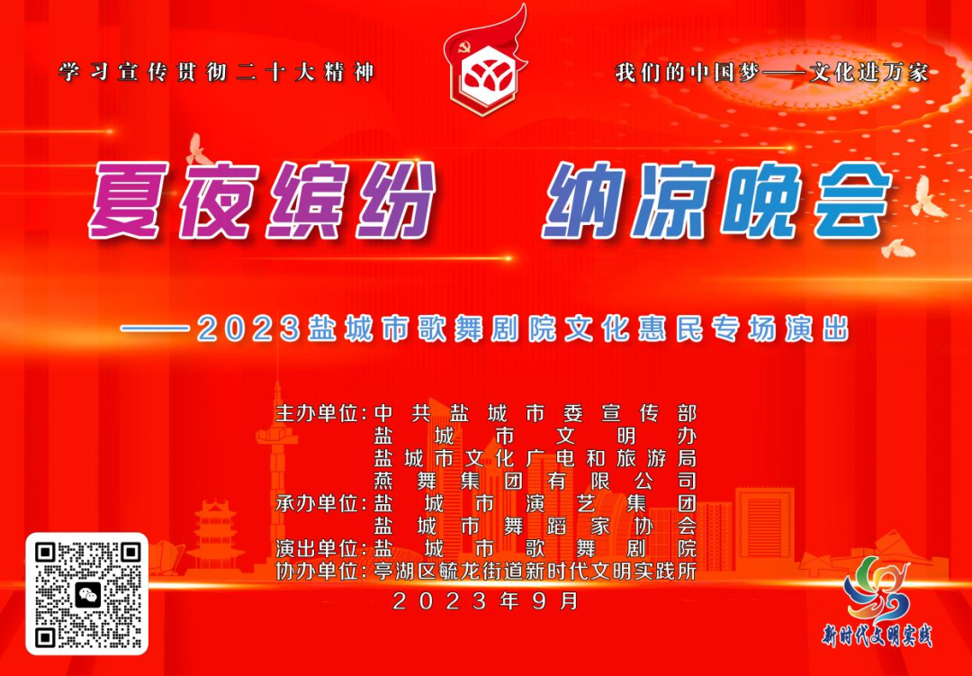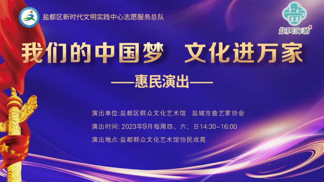 音/乐/现/场 Hello September 演出单位:吴碧霞&南京民族乐团 演出地点:盐城市文化艺术中心大剧院 演出单位:阿姆斯特丹戏剧人声重唱团 演出地点:盐城市文化艺术中心大剧院 演出单位:盐城复迎商业管理有限公司 演出地点:KK-PARK福星现场 演出单位:盐城复迎商业管理有限公司 演出地点:KK-PARK福星现场 演出单位:盐城复迎商业管理有限公司 演出地点:KK-PARK福星现场 演出单位:盐城复迎商业管理有限公司 演出地点:KK-PARK福星现场 live现场: “一口吃不成胖子” 扭动开关乐队 2023江浙沪巡演-盐城站 演出单位:盐城复迎商业管理有限公司 演出地点:KK-PARK福星现场 演出单位:大丰区文化馆、大丰区锡剧团、大丰区大中街道文广服务中心 演出地点:大丰区大中文体艺术中心梦想剧场 演出地点:盐城市文化馆群星剧场 先/锋/剧/目 Hello September 演出单位:陕西人艺 演出地点:盐城市文化艺术中心大剧院 演出单位:陶侃剧社 演出地点:1956星剧场 演出单位:南京话剧团 演出地点:盐城市文化艺术中心大剧院 演出单位:山羊剧团 演出地点:1956星剧场 演出单位:如皋市木偶艺术团 演出地点:1956星剧场 演出单位:开心麻花 演出地点:1956星剧场 演出单位:盐都区文化馆、盐城百川戏剧中心 演出地点:盐都区文化馆百姓剧场 演出单位:草房子艺术团 演出地点:盐城草房子剧场 戏/曲/盛/宴 Hello September 演出单位:射阳县淮剧团 演出地点:淮剧文化剧场 演出单位:射阳县淮剧团 演出地点:淮剧文化剧场 演出单位:东海吕剧团 演出地点:东台市王昆大剧院 演出单位:东台市文化馆 演出地点:东台市各镇区 演出单位:东台市文化馆、大丰区文化馆 演出地点:东台市王昆大剧院 演出单位:射阳县淮剧团 演出地点:淮剧文化剧场 演出单位:盐城市歌舞剧院 演出地点:盐城市外滩城市阳台 演出单位:大丰区文化馆、大丰区锡剧团 演出地点:大丰区大中文体艺术中心梦想剧场 演出单位:盐城市歌舞剧院 演出地点:盐城市外滩城市阳台 演出单位:射阳县淮剧团 演出地点:淮剧文化剧场 演出单位:盐都区群众文化艺术馆、盐城市曲艺家协会 演出地点:盐都区群众文化艺术馆怡民戏苑 演出单位:东台市文化馆 演出地点:东台市金墩广场 演出单位:建湖县淮剧团 演出地点:淮剧小镇粮仓艺术中心 演出单位:东台市文化馆 演出地点:东台市文化馆演艺厅 演出单位:射阳县淮剧团 演出地点:淮剧文化剧场 演出单位:盐城市盐南文旅发展有限公司 演出地点:盐立方非遗小剧场 演出单位:建湖县淮剧团、建湖县金乐法宣文化艺术团 演出地点:九龙口沙庄戏苑 演出单位:建湖县淮剧团 演出地点:双湖公园江淮戏苑 演出单位:阜宁县淮剧团、阜宁县文化馆 演出地点:阜宁县各镇中心小学 演出单位:盐都区群众文化艺术馆、盐城市曲艺家协会 演出地点:盐都区群众文化艺术馆怡民戏苑 “我们的中国梦 文化进万家” 盐城外滩·城市阳台文艺演出 演出单位:盐城市歌舞剧院 演出地点:盐城市外滩城市阳台 (演出时间以实际为准) 展出地点:盐城市美术馆3、4、5号厅 展出地点:盐城市美术馆2号厅 展出地点:盐城市美术馆1号厅 展出地点:盐城市图书馆一楼展厅 展出地点:响水县美术馆 展出地点:阜宁县农商行一楼大厅、铁军广场 展出地点:阜宁县美术馆 ( 文化馆三楼) 展出时间:2023年 展出地点:大丰区图书馆一楼大厅 展出地点:东台市各镇区 看过春天的花开 吹过夏日的晚风 这个秋天,依然想和你一起 享受秋风明月 END演出单位:扬州市扬剧研究所