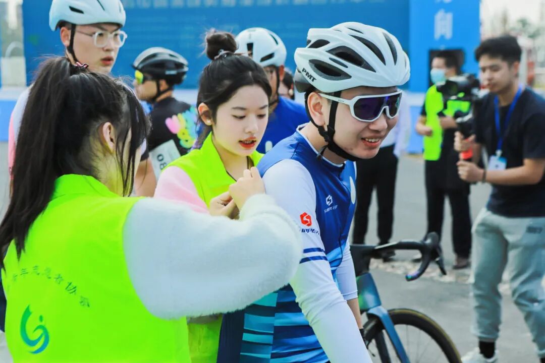 现场,来自全国各地的参赛选手们早早汇聚在日月岛环岛绿廊,身着专业赛车服、头戴赛车头盔,三五成群的聚在一起,相互交流探讨。有的热身溜车两不误、有的拍照合影笑吟吟,有的签名打卡留纪念。远远望去,数百名骑手整装待发,场面热闹非凡。