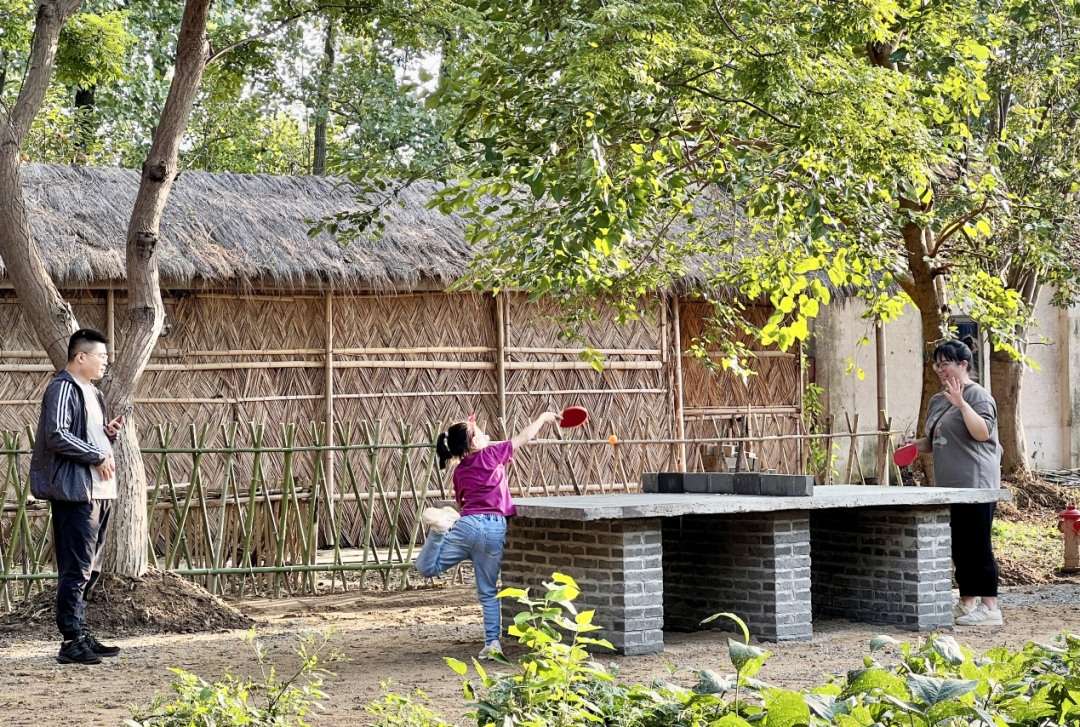 美食 自制南瓜饼、香甜烤红薯、秋日限定关东煮、美味烤肠、年代小零食等。你还可以体验一把套大鹅,用套中的大鹅做一餐美味的铁锅炖大鹅,品尝原生态的农场美食。 围炉烧烤、秘制小龙虾、原味红烧肉……你的拿手菜,在这里统统可以展示一番。红砖垒砌的烤炉、冒着炊烟的土灶,无不唤醒着70、80后的美好回忆。 娱乐 陈设 打卡 佩上红花、戴上草帽,瞬间穿越,你我相视一笑,情缘早已注定。 怀旧 水泥乒乓球台,谁记忆中的学校没有那么几个呢?几块砖头就是球网,一样的汗流浃背、快乐无边…… 茅草搭建的理发亭,看起来那么原始朴素,但是师傅的手艺却是经过代代传承的,一套行云流水的动作下来,虽然搞不定大波浪、流行卷,但是你要的清清爽爽一定是没问题的。 篝火 欢乐不用做选择,白天&夜晚,当夜幕降临,一团篝火熊熊燃起,一群人围着篝火堆唱啊跳啊,无论是民族舞还是现代舞,反正怎么开心怎么来,放下包袱、忘记烦扰…… 靠在篝火旁的人,怎么会感受不到温度呢?星空之下,赴一场篝火人间,燃烧的篝火,碰撞的酒瓶,和聊不完的人生……