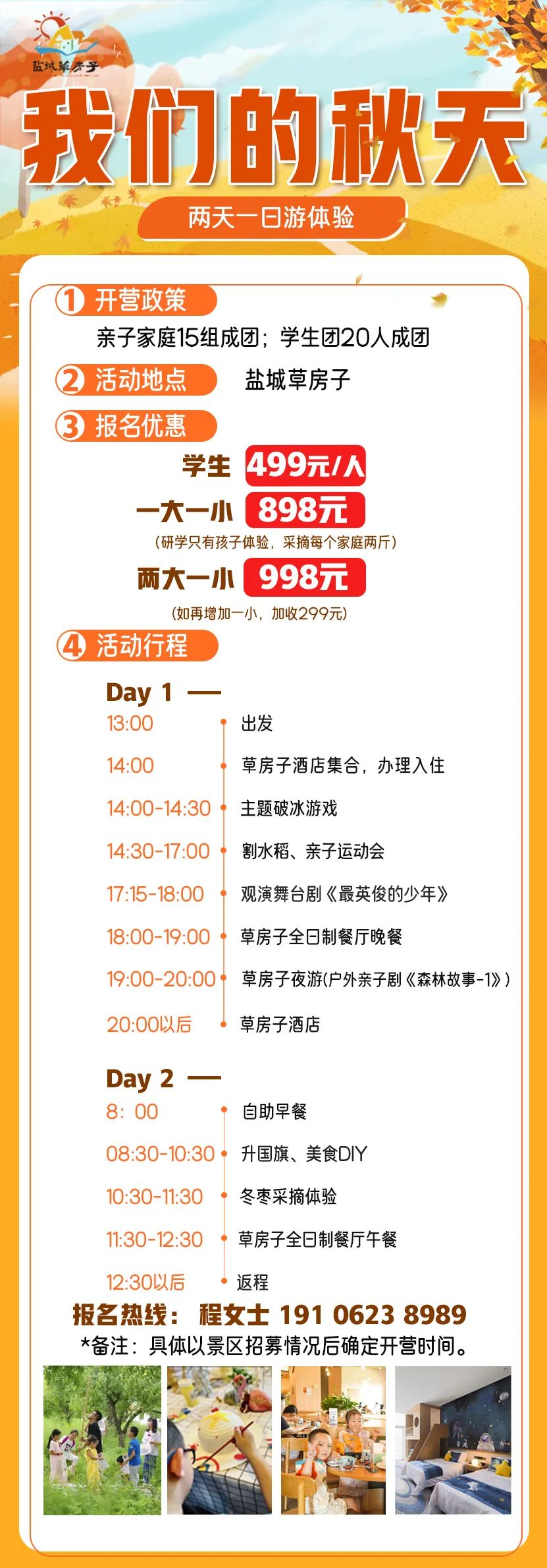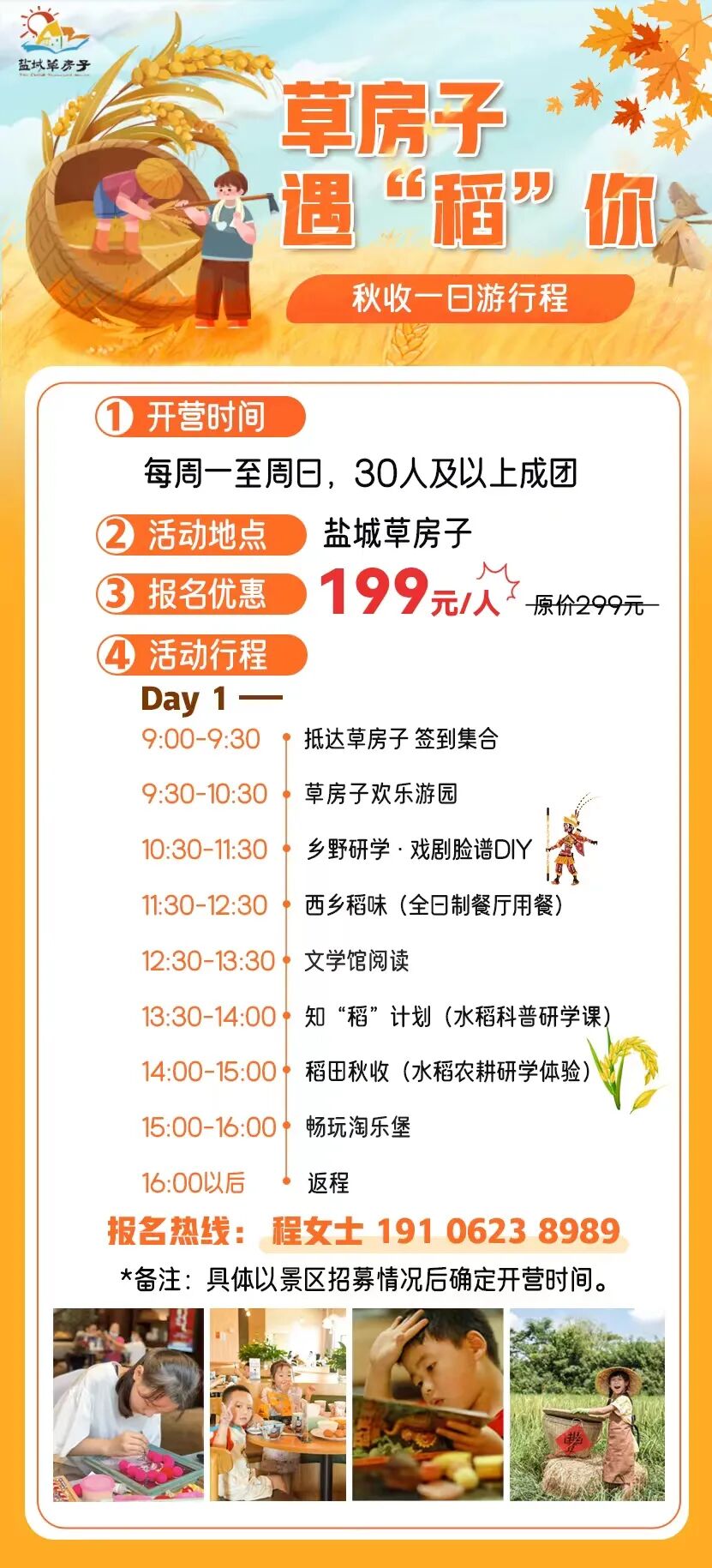 童享水乡时光橙黄橘绿时,最是乡村胜景走到田间地头,一饱口福两日营火热招募我们的秋天去看一场不可错过的乡野秋日去与草房子舞台剧的美好相逢秋游去哪玩?现在出发到草房子刚刚好! 活动定制 接受团体、学校、机构单独开团承接各种活动定制及商务会奖定制会务请联系19106238989(程女士)研学/团建请联系15995187347(周先生)END