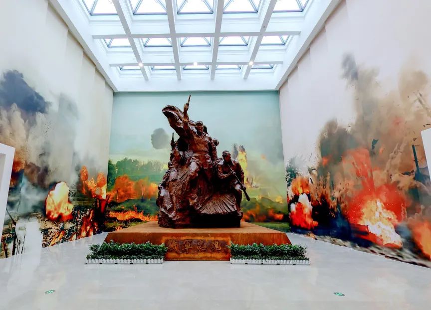 盐城新四军纪念馆主馆区主体建筑是一座现代化的地标性建筑,外形呈“四”字形设计与新四军的“四”相意会。