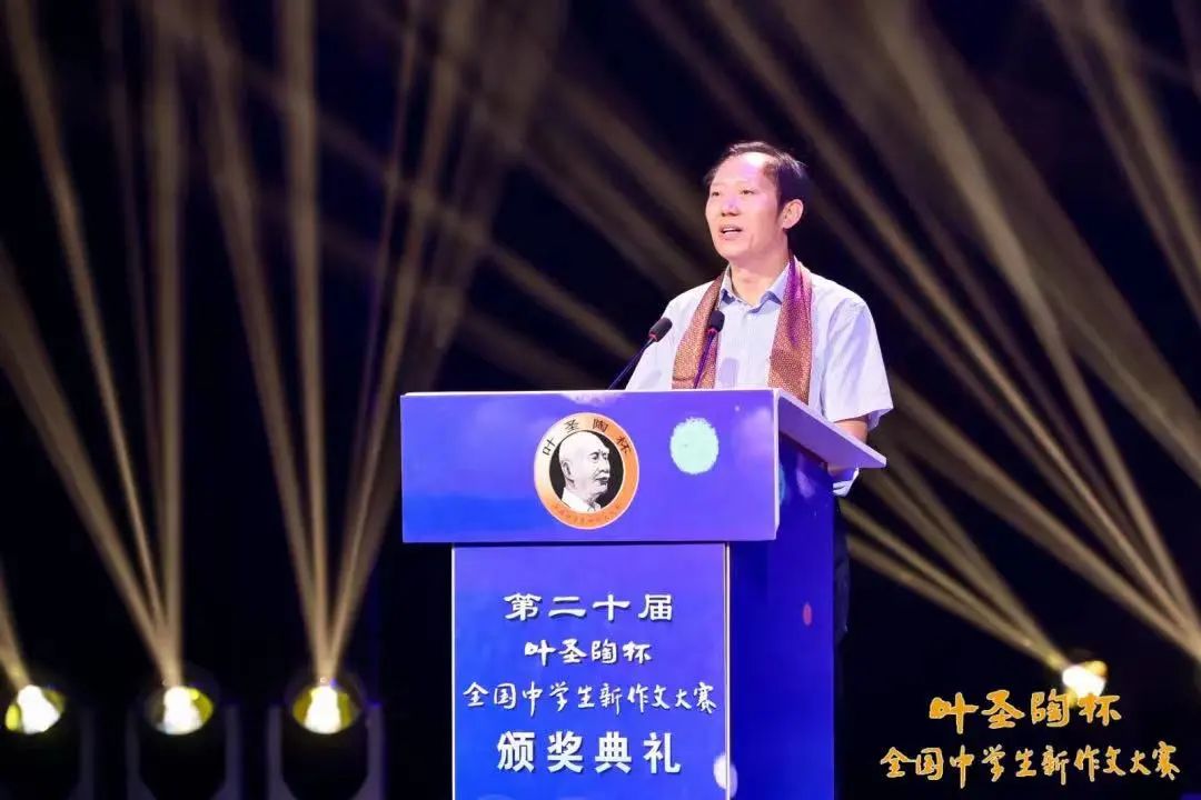 坚守二十年,筑梦二十届。2023年7月30日,第二十届叶圣陶杯全国中学生新作文大赛颁奖典礼在江苏省盐城市草房子景区隆重举行。高洪波、白烨、吴思敬、张清华、曹文轩、陈福民、杨早、叶小沫、叶永和、王世龙、李飞、蒋成峰、徐刚、陈思、徐延宝、张树伟、曹文芳、郑艳、叶扬、蒋拥军、伊永贵、单连顺等文学界、教育界、新闻出版界专家和盐城市教育局,盐城市盐都区区委、区政府、教育局、文化广电和旅游局、城镇化集团、文旅集团等支持单位的领导出席,获奖师生代表400余人参加颁奖典礼,共同见证了又一批文学少年的青春加冕,共同庆祝叶圣陶杯大赛二十年的冠礼纪念。 廿载坚守:以文育人谱华章 叶圣陶杯全国中学生新作文大赛创办于2003年。二十年间,大赛一路风雨,勇毅前行,陪伴无数中学生激扬文字、圆梦青春,得到广大师生的热情支持,成为广受欢迎的品牌赛事活动。从2019年起,叶圣陶杯大赛就一直被列入教育部竞赛“白名单”之中。 大赛由中国当代文学研究会主办,中国当代文学研究会校园文学委员会和中国少年儿童新闻出版总社有限公司《中学生》杂志承办。大赛坚持党的教育方针、文艺方针,贯彻教育部《普通高中语文课程标准》教学改革精神,以“弘扬叶圣陶教育思想,助力语文新课程改革;引领中学生健康写作,发现与培养文学新苗”为宗旨,服务于“立德树人”根本教育任务,倡导“生活化内容、个性化表达、多样化风采”的写作理念,始终坚持严谨规范的组织程序和公平、公正的评选原则,搭建高水平的专业竞赛平台,引领中学写作教学,发挥竞赛活动独有的育人作用,目前已形成了鲜明的办赛风格。 本届大赛颁奖典礼上,大赛领导小组组长、中国当代文学研究会会长、北京师范大学国际写作中心执行主任、教授张清华代表主办单位致辞。他表达了对盐城市盐都区人民政府和盐城草房子景区以及所有支持大赛的单位的由衷谢意,对叶圣陶杯大赛的组织工作给予了充分肯定。他指出,历经二十年的辛勤耕耘,叶圣陶杯大赛已成为全国中学生写作的一个标杆,吸引了众多优秀中学生参赛,产生了众多佳作,这是对中学写作教学的推动,也是对叶圣陶等前辈大师的纪念和献礼。当代文学研究会的职能与使命不仅是文学研究与评论,还包括文学教育,而主办叶圣陶杯大赛就是践行文学教育最好的体现。大赛不仅提升了学生的写作兴趣与文学素养,发现了众多有前途的文学新苗,而且在引领着写作教学朝着健康正确的方向发展。今后的叶圣陶杯大赛要继续严格按照教育部要求,不断总结经验、提升质量,积极为培养具有文学素养与写作能力的高素质创新人才作出更大的贡献。 叶圣陶孙女、《中国少年报》原主编叶小沫在贺辞中回顾了叶圣陶杯大赛的举办历程,对大赛坚持举办二十届感慨万千。她饱含深情地说:“二十年来,大赛迎来了一批又一批热爱文学、热爱写作的青少年朋友;二十年里,送走了一批又一批在大赛中经过历练的优秀人才。不知道有没有人认真地想过,叶圣陶杯大赛为什么能经历风风雨雨一直走到今天?不知道有没有人认真地算过,有多少青少年朋友在大赛的鼓励和帮助下,创建了自己美好的人生,为祖国和人民作出了自己的努力?而今天的你们,是这一切的见证者,是继往开来的又一代。”她同时对盐城市盐都区支持大赛、承办颁奖典礼,对盐城草房子景区为青少年儿童打造梦幻般的文学家园,表达了由衷的赞叹之情。 获奖学校代表、山东省临沂第一中学校长伊永贵在发言中介绍了学校多年参加大赛的经验。他说,参赛组织过程实际就是一种教学过程,甚至比常规的课程教学具有更好的效果,通过参赛调动学生写作热情,激发学生对语文的兴趣,形成浓厚的学习氛围,能够产生大面积提高写作成绩的蝴蝶效应。同时,正如叶圣陶先生所说,“写作便是生活的本身”,热爱写作即热爱生活,这也与“以人为本,全面发展”的教育理念息息相通。他表示,期待叶圣陶杯大赛办得一届比一届好,发现与培养出更多的热爱写作、善于写作的国家栋梁之才。 把脉时代:写真生活传真情 第二十届叶圣陶杯大赛分高三组、高一高二组,分别采取线上省级赛和现场全国赛的形式举行。从2022年12月8日启动至2023年3月31日截稿,全国计有2000多所学校参赛,推荐线上省赛投稿计45万余篇,在评选出省级一、二、三等奖的同时,选拔全国决赛选手4847名。高三组总决赛采取线上决赛写作、高一高二组总决赛采取线下现场书写。经评委会三评与终评,评出“全国十佳小作家”奖10名,全国总决赛特等奖50名,一等奖1005名,二等奖、三等奖若干名。  叶圣陶杯大赛始终重视通过决赛命题来引领中学生写作,体现鲜明的文化情怀和育人导向。本届大赛命制了三套5道决赛题目,延续了大赛一贯的命题理念与思路:弘扬优秀传统文化,呼应时代精神潮流,倡导文学表达手法,引领学生关注现实生活。有关专家及参赛学校的老师普遍认为,赛题集中体现了大赛的理念和对于中学生价值观的引领以及写作训练的导向性,引导学生立足身边生活,表达健康向上的思想感情和审美情趣,对日常教学中指导学生写什么、怎么写,具有很好的启示。 按照大赛工作计划,组委会制定了决赛评奖方案,遴选组建了由知名作家、高校教师、语文名师、资深编辑等专家组成的评委会,按照严谨