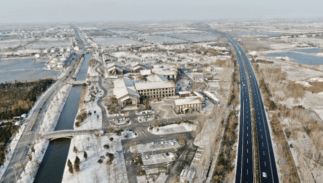 “应是天仙狂醉,乱把白云揉碎。”盐城的第一场降雪,如同诗意的画卷,缓缓展开。一场雪,褪去了草房子的金黄。