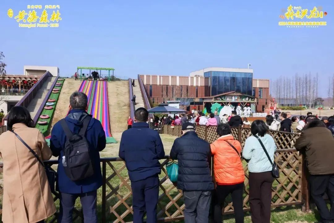 节日氛围浓厚,活动精彩纷呈 东台黄海森林生态旅游度假区 迎来五湖四海的游客 齐心协力再创辉煌 2024春节假期期间 度假区自营收入累计突破 500万元 较上年同期增幅 108% 业态火热 营收创佳 据初步统计 今年春节假期期间 黄海森林自营收入累计突破500万元 景区旅游 240万元 住宿 140万元 酒店餐饮 122万元 总计 502万元 假期期间,景区门口排起长队,游客服务中心停车场全满,换乘中心车辆一车难求,龙年集市、森林之眼、木育森林等多个游乐项目每天不停息,黄海森林酒店、美居酒店入住率节节攀高,野奢杉墅每日的预定客情也是居高不下。 齐心协力 捷报连连 春节期间(除夕到初八)度假区实现游客接待31.4万人次,景区游客9.4万人,去年景区3.28万人,同比增长187%。 文旅公司、美居酒店、黄海森林酒店、野奢杉墅、老渔家、海上森林主题餐厅等多方合力实现突破500万元的自营收入,齐心协力,共同点亮东台黄海森林生态旅游度假区这块绿色招牌! 01 文旅公司 黄海森林新春佳节期间,文旅公司共创营收240万元,较去年翻倍有余。其中龙年集市、换乘中心小交通、木育森林科普体验馆、森林之眼等业态备受关注,人气居高不下,游客络绎不绝,几乎每日都处于爆满状态。 沉浸式感受龙年大集 非遗糖画摊位人满为患 文旅工作人员崔浩然表示,今年春节期间收入同比去年翻倍,景区核心区入园游客日均破万人。 森活集街区民俗杂耍项目引众人围观 孩子们的天堂,大人们的"网红打卡点"木育森林 在森林之眼体验天空与树林合二为一 02 美居酒店 美居酒店节日期间总营收为119万元,超去年同期120%。其中客房营收为72.6万元,超去年同期120%;餐饮营收为34.5万元,超去年同期115%。舒缓典雅的法式旋律与香氛,为游客提供最精致的入住体验,美味多样的海鲜自助餐,让游客尽情享用一场豪华盛宴。 03 黄海森林酒店 假期期间,黄海森林酒店营收较去年春节同比增长35%,其中客房营收增长20%,餐饮营收增长49.8%。创新发展服务升级,温泉酒店自助餐座无虚席,美食饮品几近供不应求,酒店房间与小木屋住客络绎不绝。 04 野奢杉墅&老渔家 野奢杉墅、老渔家门庭若市,节日期间共创营收突破50万元,同比去年增长67%。高品质的海鲜享受,优雅别致的住宿环境,给游客提供不一样的食宿体验。 05 海上森林主题餐厅 海上森林主题餐厅节日期间共创营收突破30万元,营业额较去年同期增长105%。尽享夜宵嗨森林,服务细致、氛围欢乐,五湖四海的游客宾至如归。 位于黄海森林国际会务中心的水杉厅更是在大年初二当晚圆满举办了首届森林春晚,并在大年初三成功举办了刘鹤龙&于霄伟德云社专场,两大晚会热闹非凡,牵引出浓浓的中国年味。 擘画蓝图 再创辉煌 擘画蓝图谱新篇 风帆正劲再起航 东台黄海森林生态旅游度假区 将继续努力拼搏 争取再创新辉煌