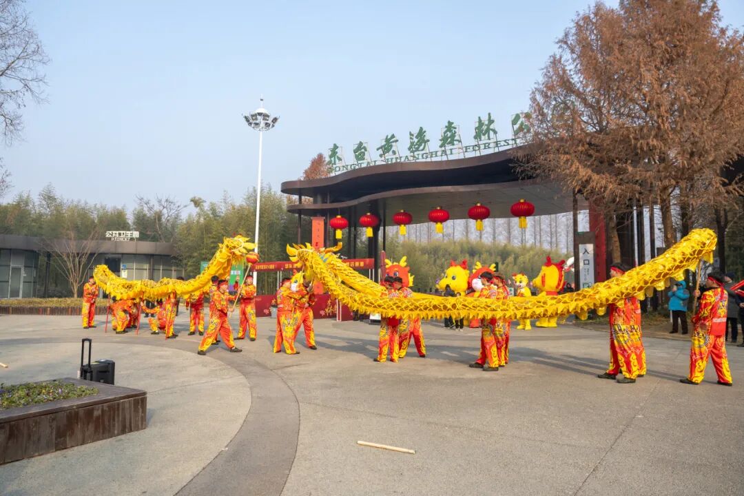 龙年集市开街首日 入园人数近万 大年初一早上 黄海森林举行了画龙点睛仪式 现场气氛热烈,掌声不断 咚咚锵、咚咚锵…… 伴随着阵阵音乐声 两条“舞龙”腾空而起 舞龙队在喜庆的音乐中 变换着各种造型 使人眼花缭乱,目不暇接 舞者心情愉悦,游客喜上眉梢 到处洋溢着欢乐与和谐 龙年美食集市围满了游客 一元商品区、鸡排、甜品...... 应有尽有 让游客们感受到了浓浓年味 极具氛围感的非遗文化市集 剪纸、糖画、捏泥人等 游客们深切感受到匠心独运的力量 同时也为节日增添了一份甜蜜和欢乐 童年怀旧游戏 解锁童年美好时光 趣味十足 体验别样的快乐 明日(正月初二) 傅琰东将携手团队 在黄海森林国际会议中心 带来惊艳的魔术表演 还有众多知名艺人 歌曲、舞蹈、曲艺等节目 期待与您相见 看春晚,不花钱 2月11日-2月12日 入住黄海森林任意酒店 即可免费获得春晚门票 现场观看:2024黄海森林首届春晚 (春晚门票共计500份,数量有限!先到先得!) 补充说明: 入住野奢杉墅每栋最多8张 入住森林木屋/开心森林每间房最多2张 入住美居酒店每间房最多2张 入住黄海森林酒店每间房最多2张 活动最终解释权归江苏黄海海滨国家森林公园管理中心所有 在如此喜庆热闹的气氛中 快带上你的亲朋好友 来黄海森林生态旅游度假区 开启新年之旅