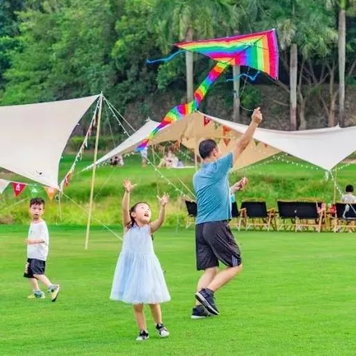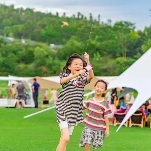 午后,坐在帐篷里,静静聆听不远处传来的明快的音乐,看着孩子在宽阔的草地上奔跑玩耍,感受被治愈的一天。