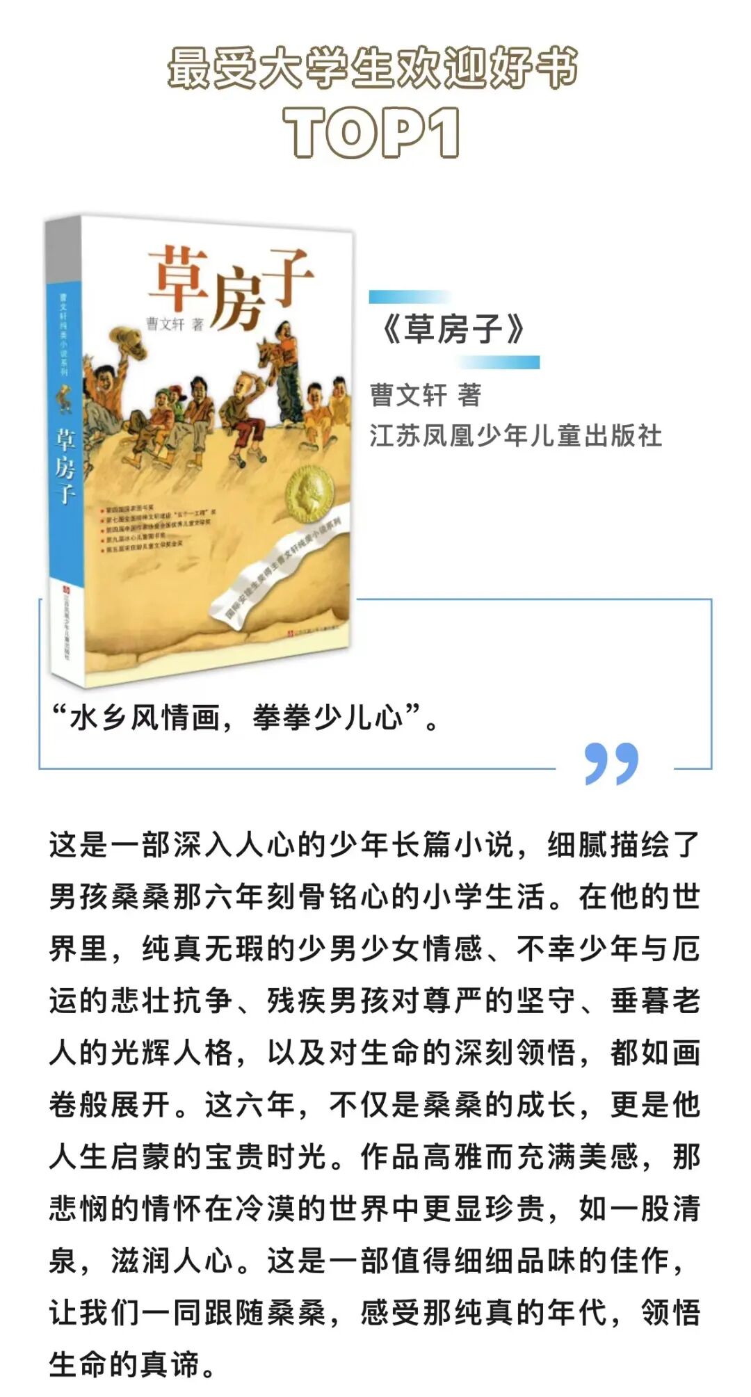 《草房子》荣获榜单第一