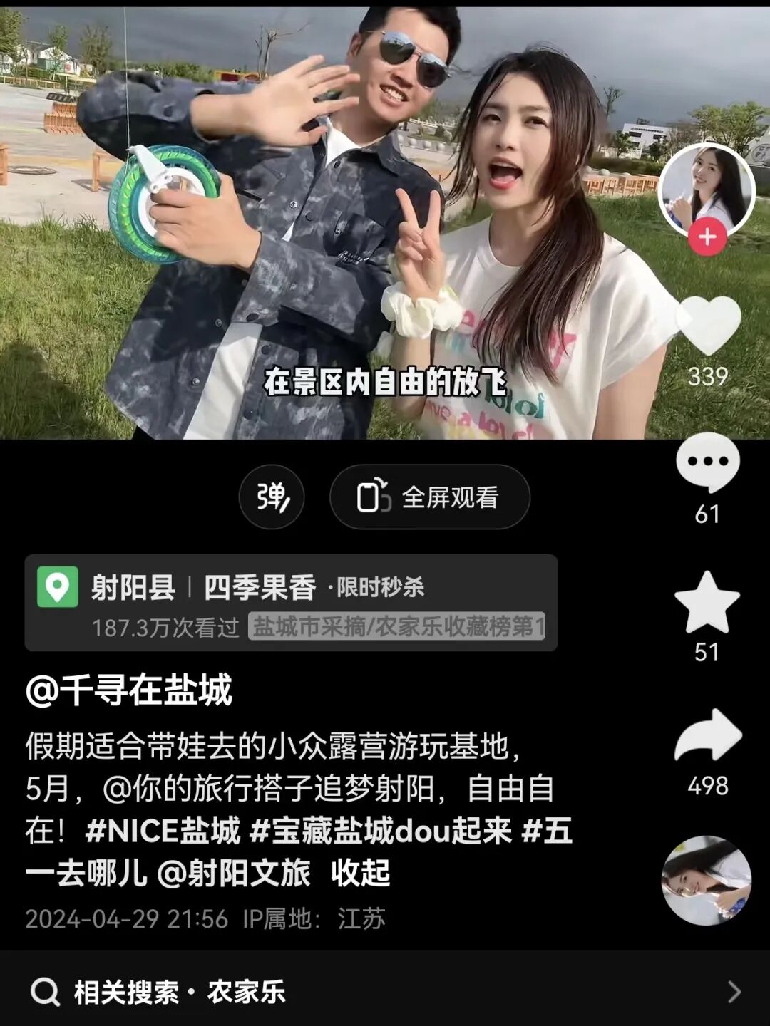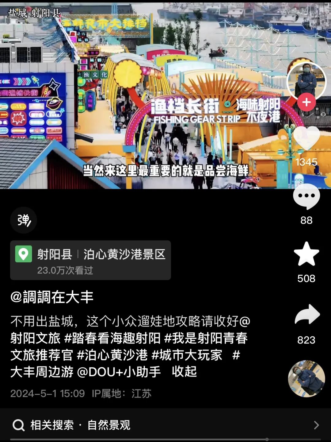 五一射阳丰富的文旅活动,吸引众多游客前来游玩,更有不少旅游达人前来打卡拍照。通过旅游达人引流推广,构建自媒体平台宣传矩阵,推动射阳旅游资源、文旅产品、本地特产、特色美食全网曝光。