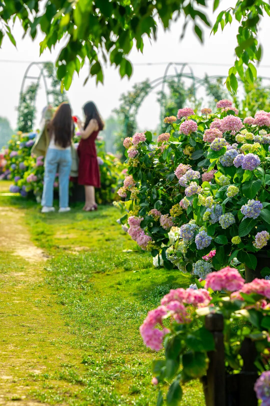 走近细看,绣球花的形态各异,有的花瓣层层叠叠,像一座座小巧玲珑的宝塔;有的则花瓣稀疏,露出里面淡黄色的花蕊,宛如一个害羞的少女。每一朵绣球花都仿佛是大自然精心雕琢的艺术品,让人不禁为之赞叹。