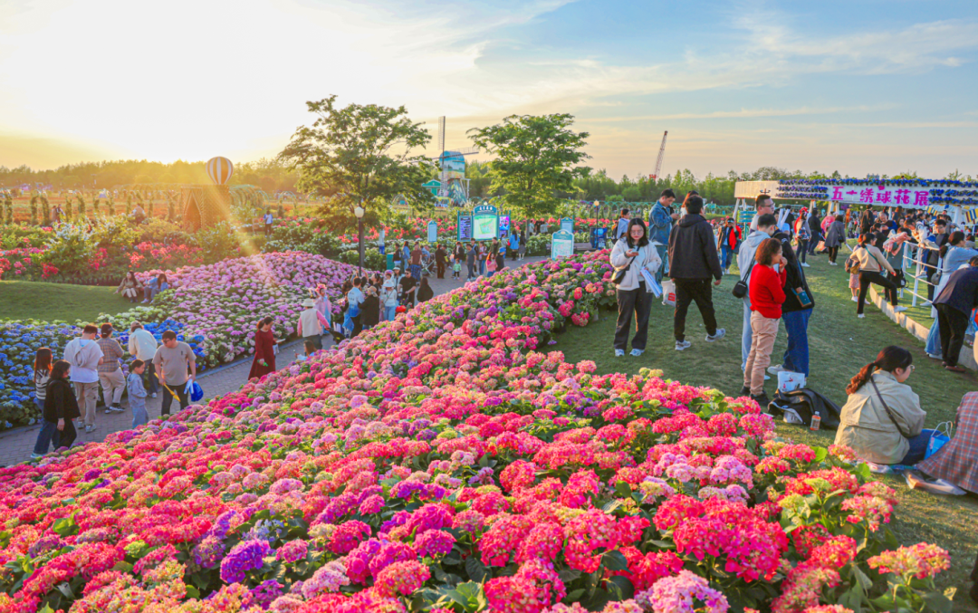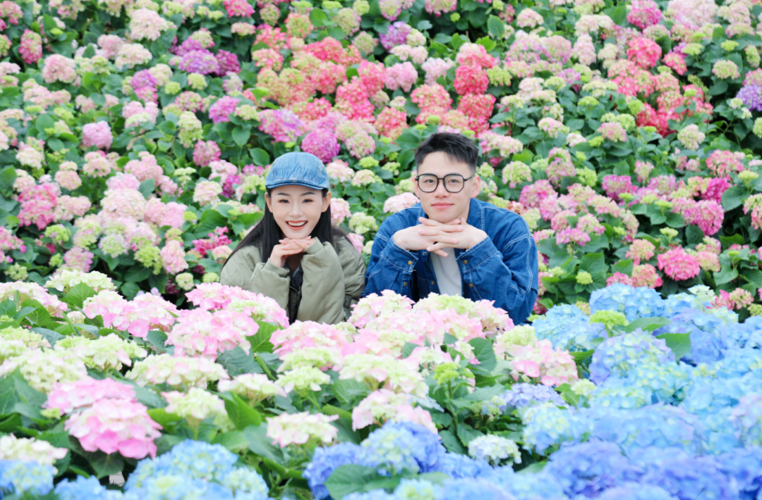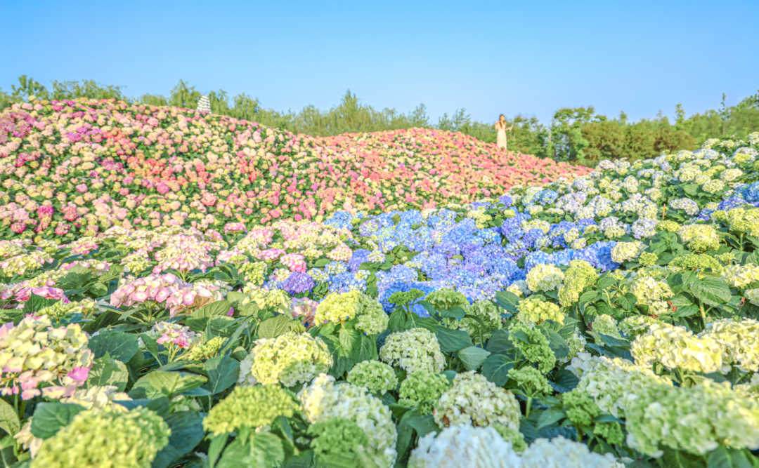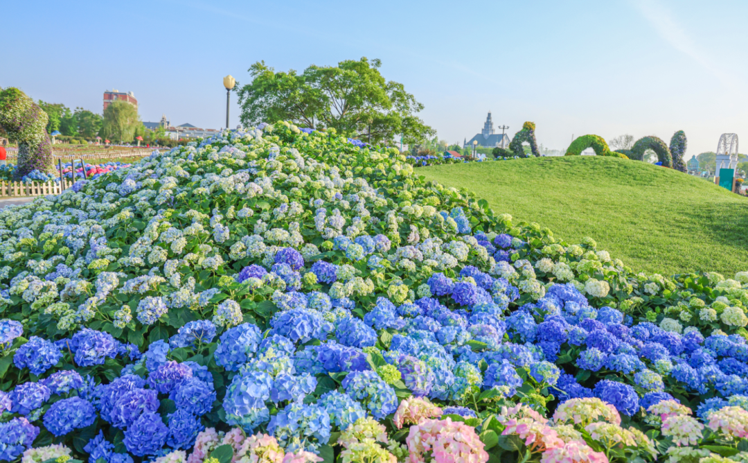 漫步在花海之中,仿佛置身于一个五彩斑斓的梦境。红的、黄的、蓝的、紫的……各种颜色的绣球花竞相开放,宛如一幅生动的油画。它们有的独自绽放,有的三五成群,宛如一群欢快的精灵在翩翩起舞。在阳光的照耀下,花瓣上的露珠晶莹剔透,闪烁着迷人的光芒。
