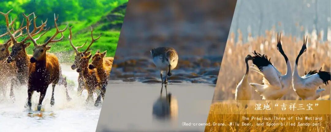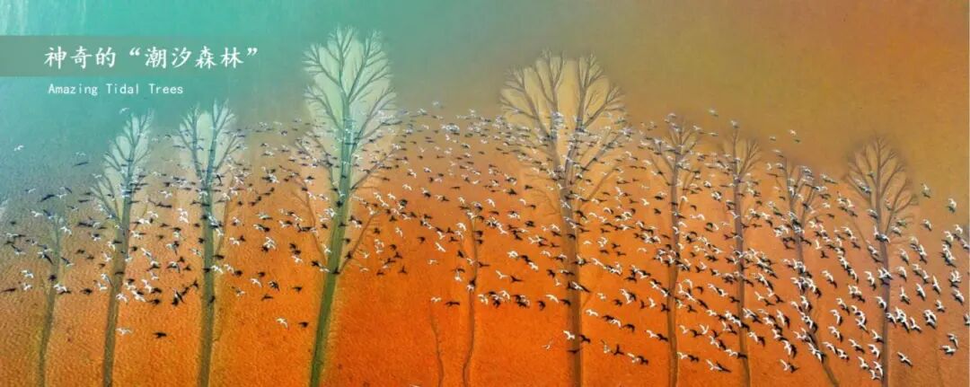 古长江、古黄河由此东流入海。江河、陆海亿万年交融,神奇的“潮汐森林”,像极了地球的“文身”,远古河流运动,为候鸟迁徙提供了栖息乐园。1200种动物在此生生不息,这是时空、天地、生灵的完美邂逅,是湿地“吉祥三宝”的yyds。