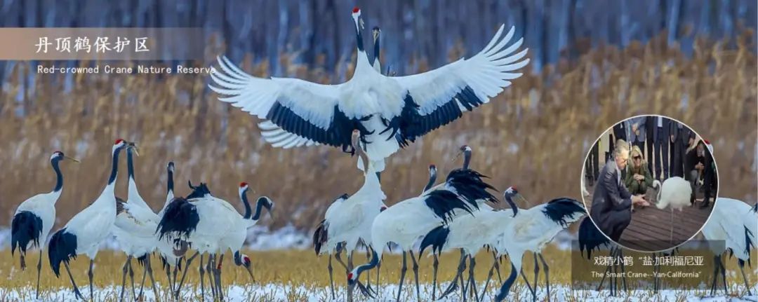 丹顶鹤保护区,婷婷仙鹤在红蒿上翩翩起舞,仙风道骨般漫步凡尘,长寿高洁,比肩凤凰,这是大自然馈赠给盐城的吉祥符号。戏精小鹤“盐·加利福尼亚”成为中美交流的 “友好使者”。