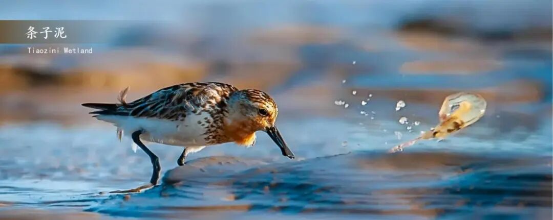 光脚踩进条子泥软绵沙窝,看水天相接、万鸟翔集。一种自带饭勺的湿地精灵——勺嘴鹬,会在这里佛系饭搭,觅食换羽,全球仅600只的稀缺,让摄影爱好者充满了挑战。