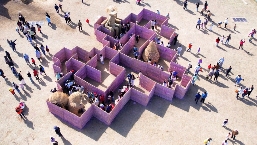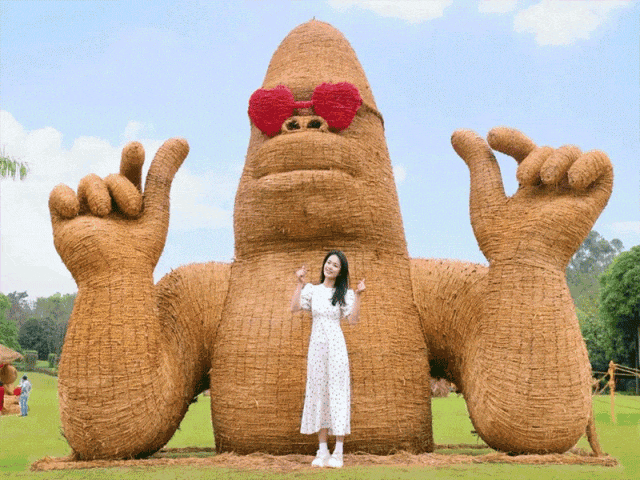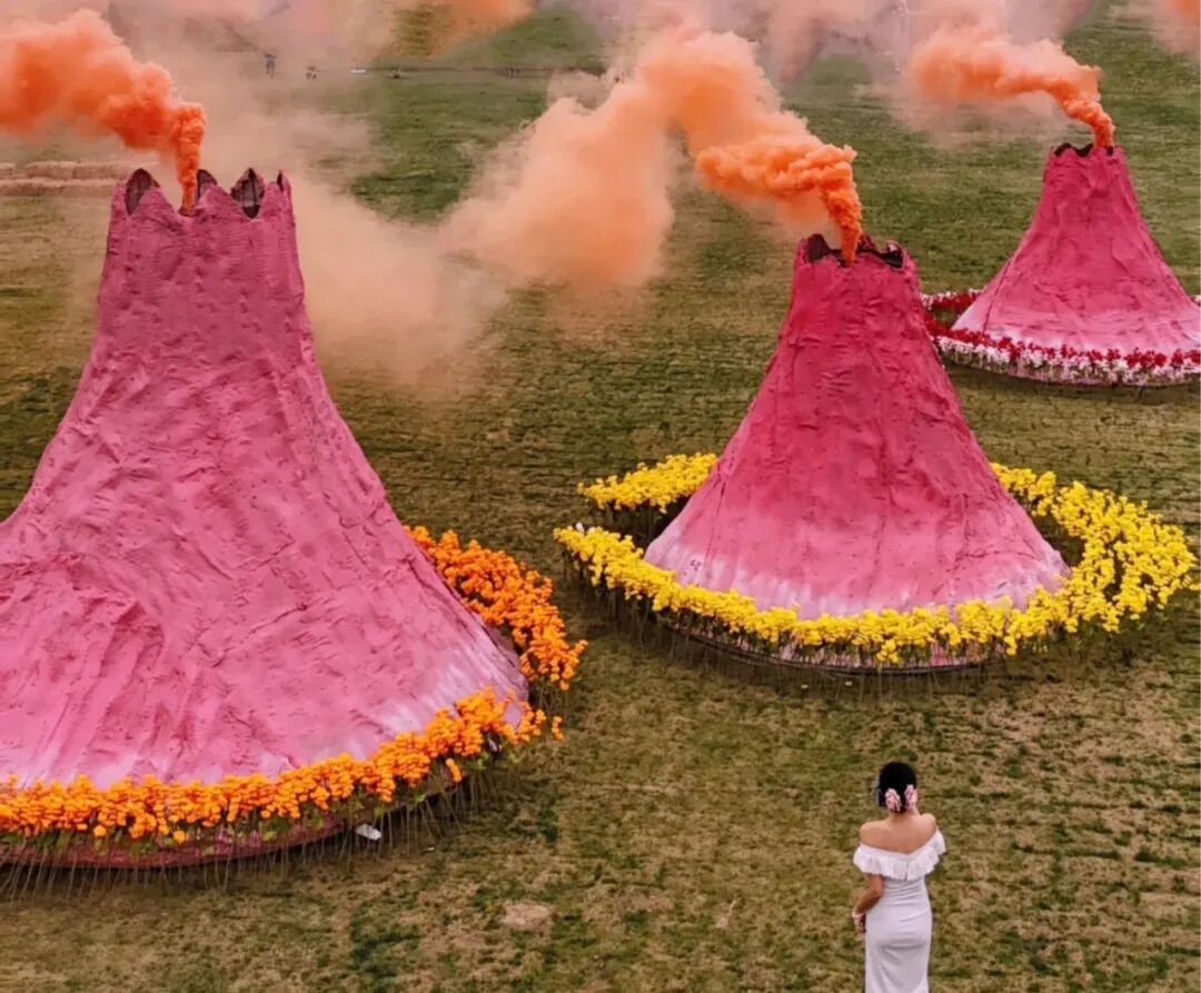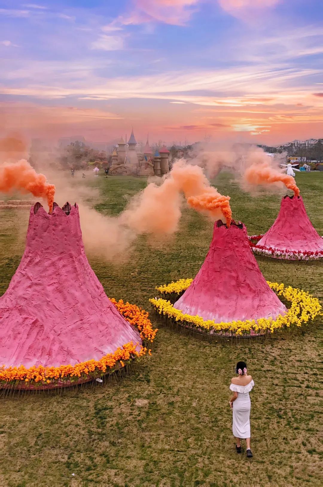△龙冈桃花源巨型稻草人王国·粉色火山喷“花”